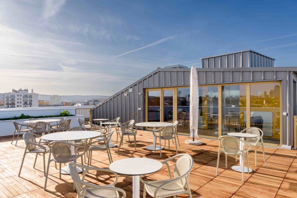 La résidence dispose également de nombreux espaces communs propices aux échanges et au divertissement : salle de fitness, jardin partagé bibliothèque, tisanerie…